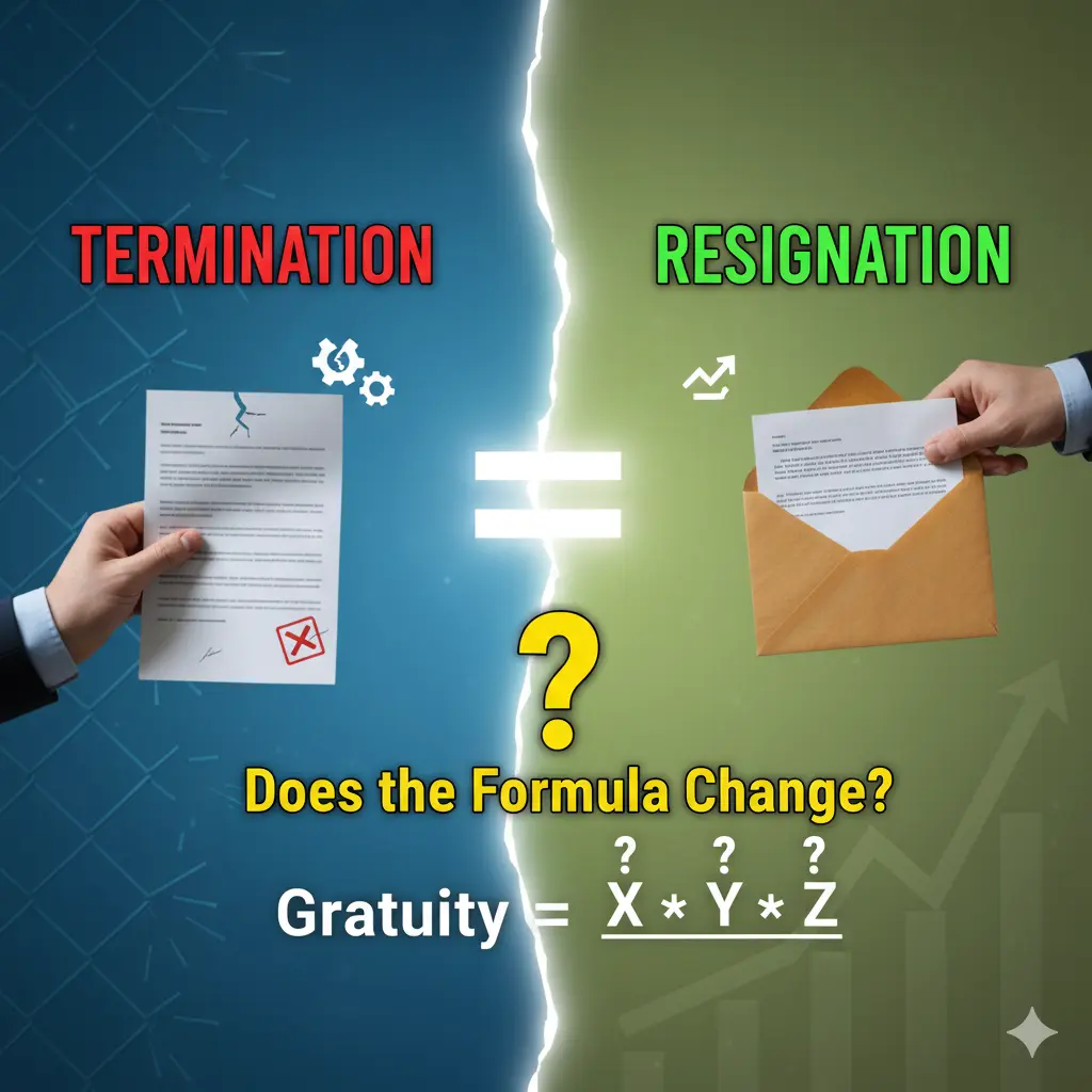Yes. Termination for cause and resignation rules can affect your entitlement. However, the main gratuity calculation formula remains the same. Always ask HR for a written settlement slip.